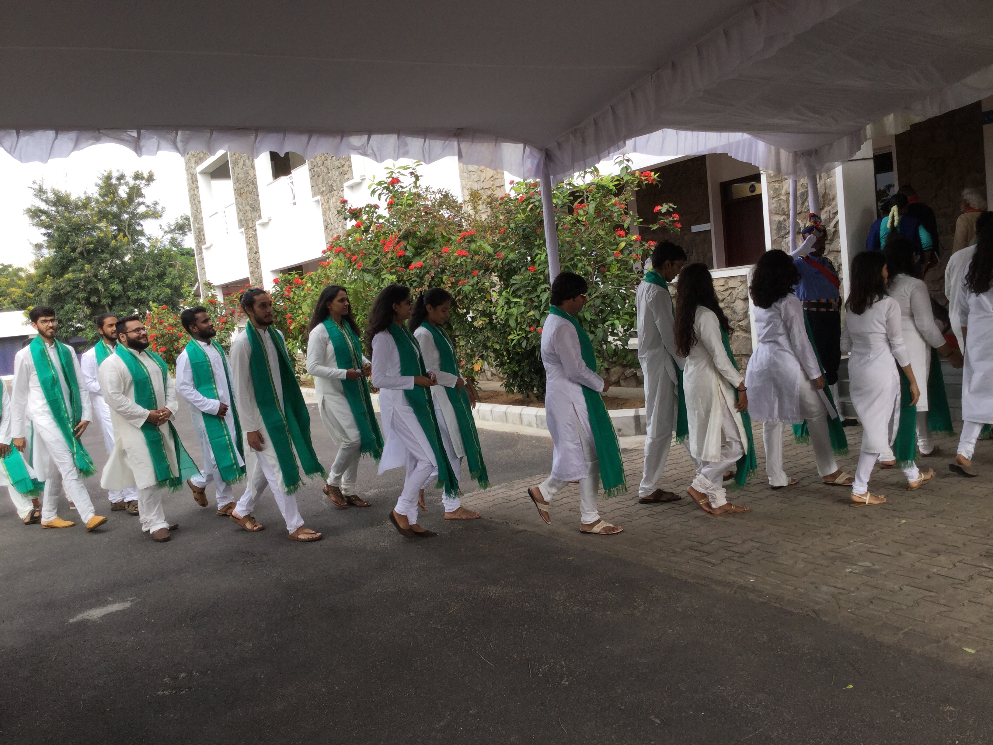 The uniqueness was the attire of the graduates, they were all dressed in white Churidhar kurta draped with a green dupata. The attire was same for both the young men and women.